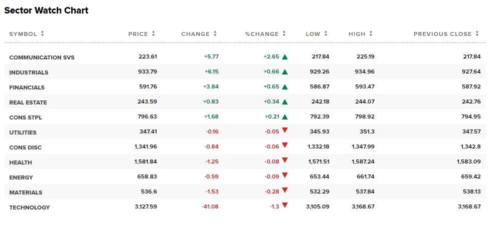 Out of the 11 sectors, 5 closed in positive territory today, with Communication Services leading the way with a gain of +2.65%, while Technology saw a decline of -1.3%.