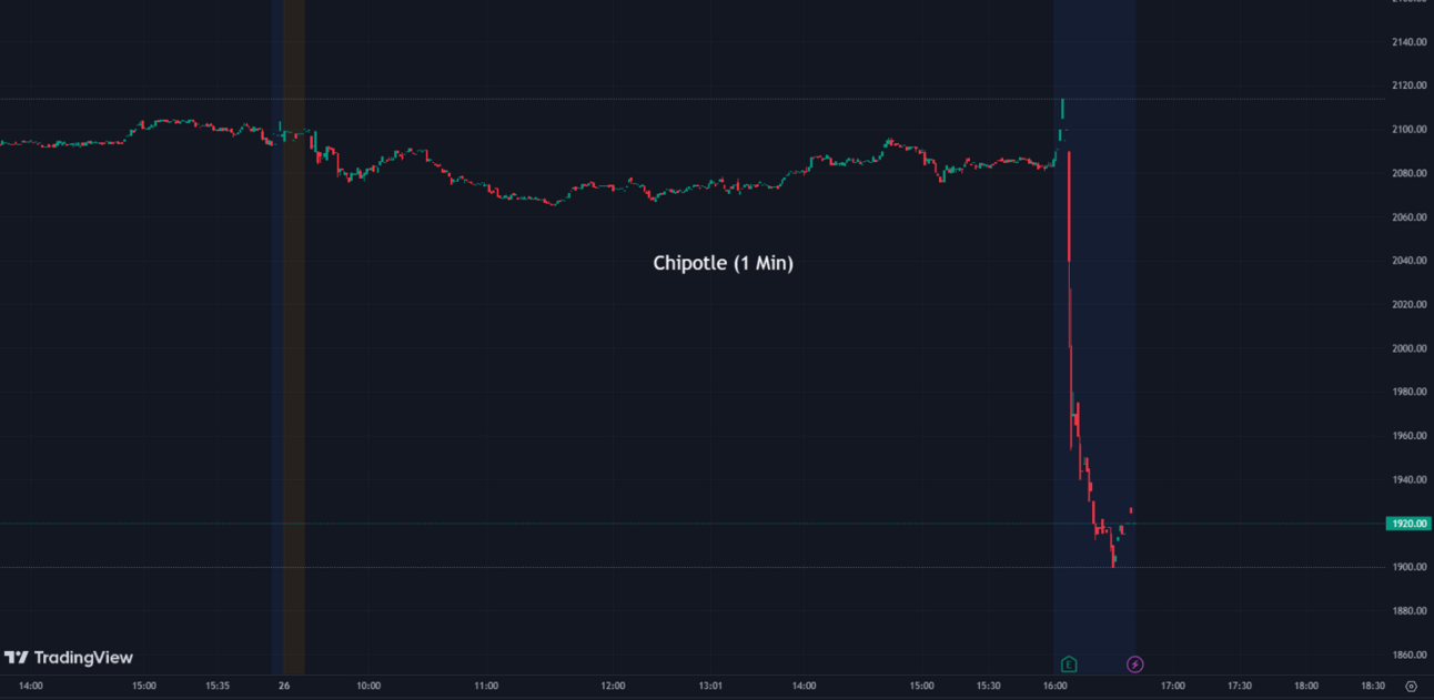Chipotle Mexican Grill's (CMG) recent quarterly report revealed earnings that surpassed expectations, but the company fell short in terms of sales, leading to an over 9% drop in stock value in extended trading. The company reported a net income of $341.8 million, up from $259.9 million a year earlier. Although Chipotle experienced a 13.6% increase in net sales to $2.51 billion in the second quarter, its same-store sales growth of 7.4% fell short of estimates. The chain expects same-store sales growth in the low to mid-single-digit range for the next quarter. Chipotle also opened 47 new locations in Q2, including 40 with drive-thru lanes for digital order pickups.