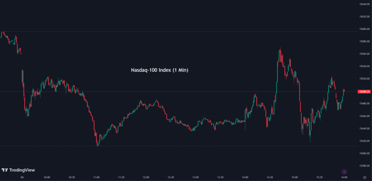 The Nasdaq-100 (NDX) fell -0.40% to conclude at 15,499
