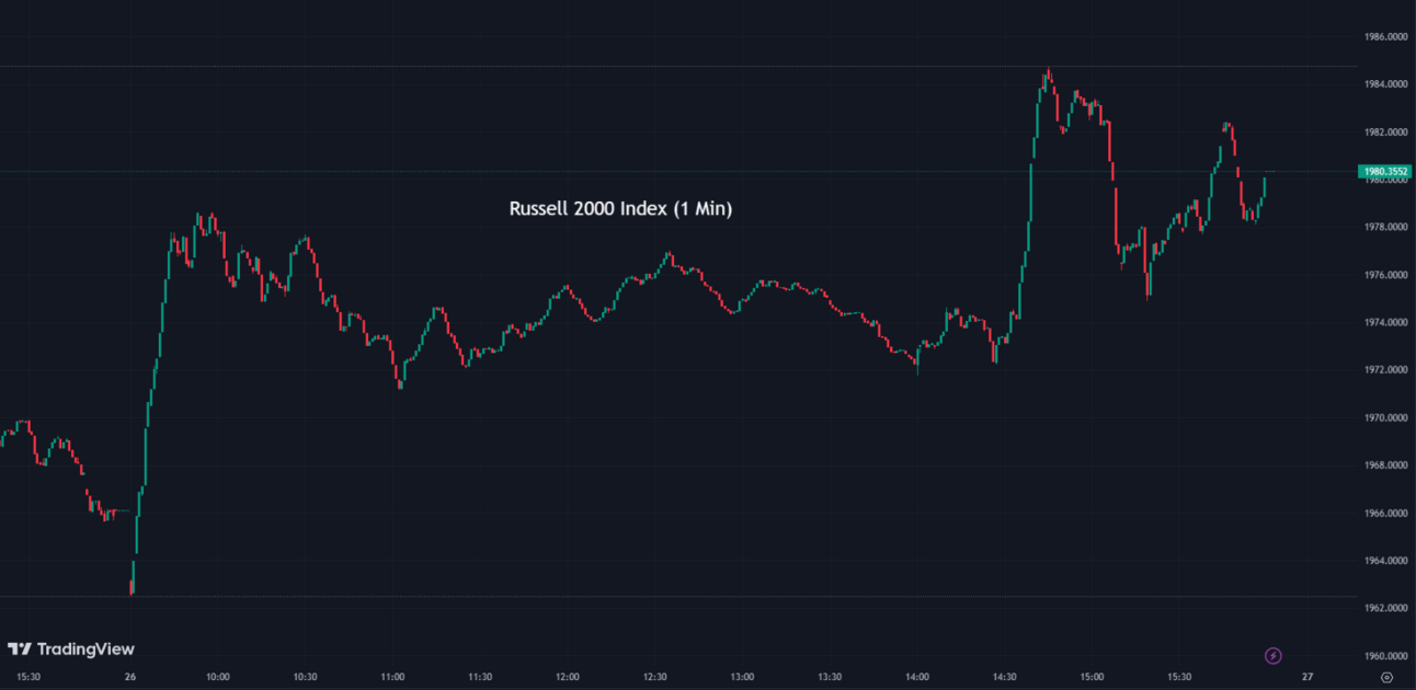 The Russell 2000 (RUT) increased by +0.72% ending the day at 1,980