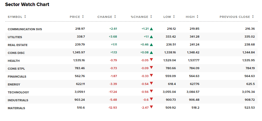 Out of the 11 sectors, 4 closed in positive territory today, with Communication Services leading the way with a gain of +1.21%, while Materials saw a decline of -2.47%.