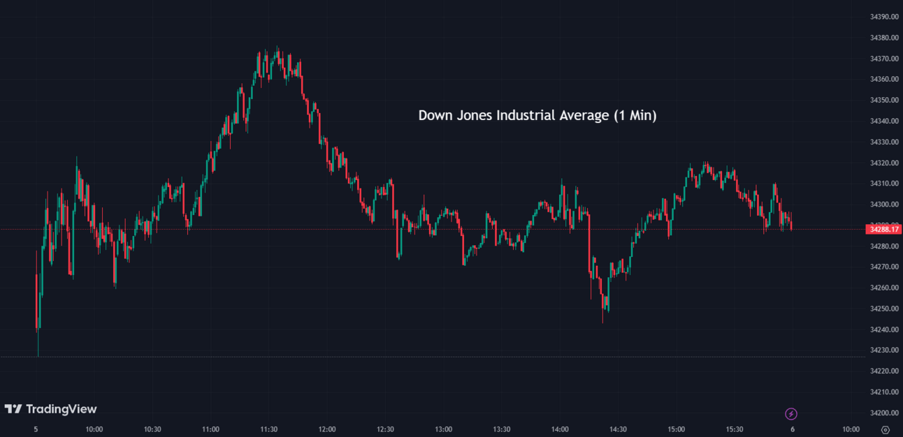 The Dow Jones Industrial Average (DJI) dropped by -0.38% ending the day at 34,288