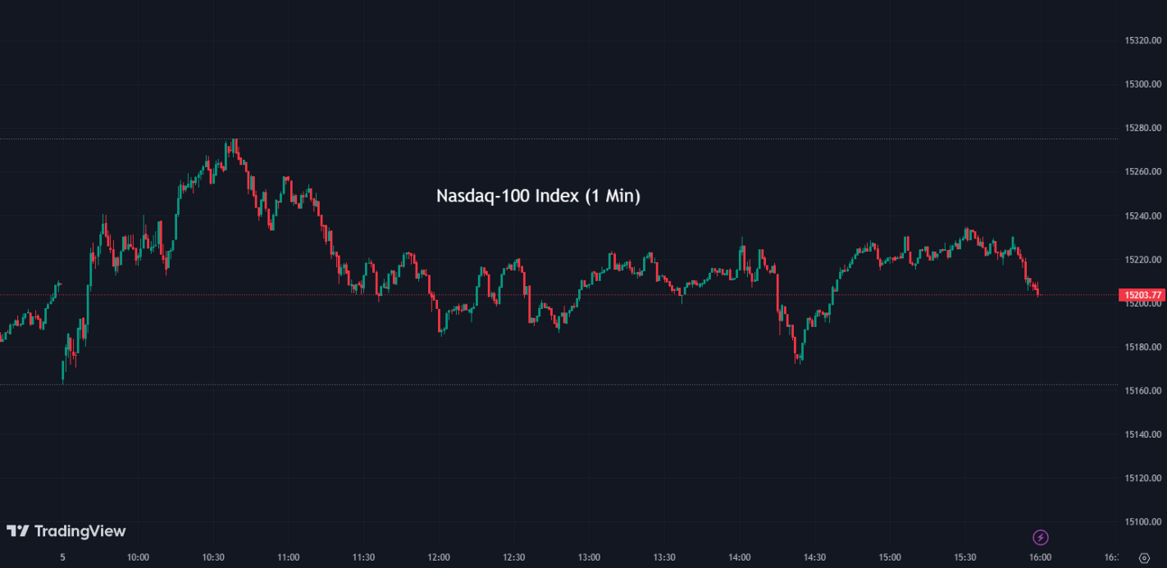 The Nasdaq-100 (NDX) declined by -0.03% to conclude at 15,203