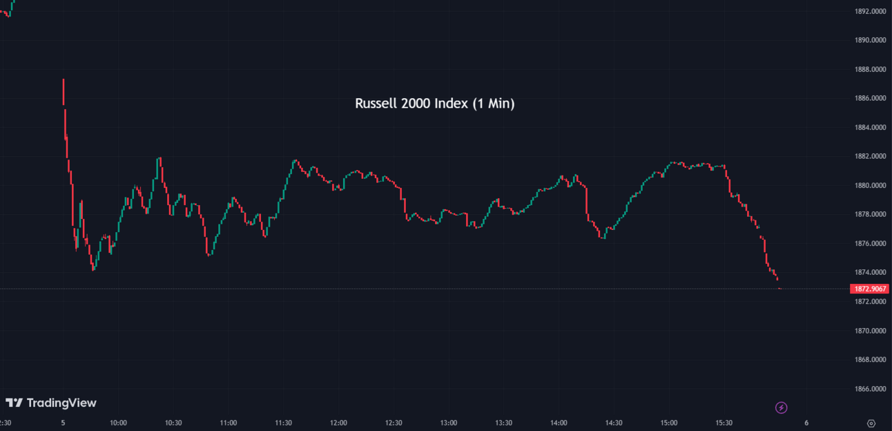 The Russell 2000 (RUT) slid by -1.26% to finish at 1,872