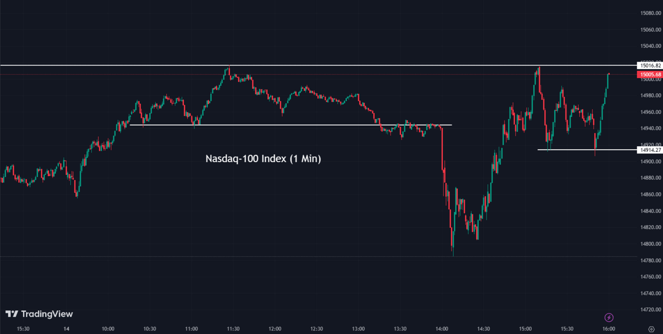 The Nasdaq-100 (NDX) rose +0.70% to conclude at 15,005
