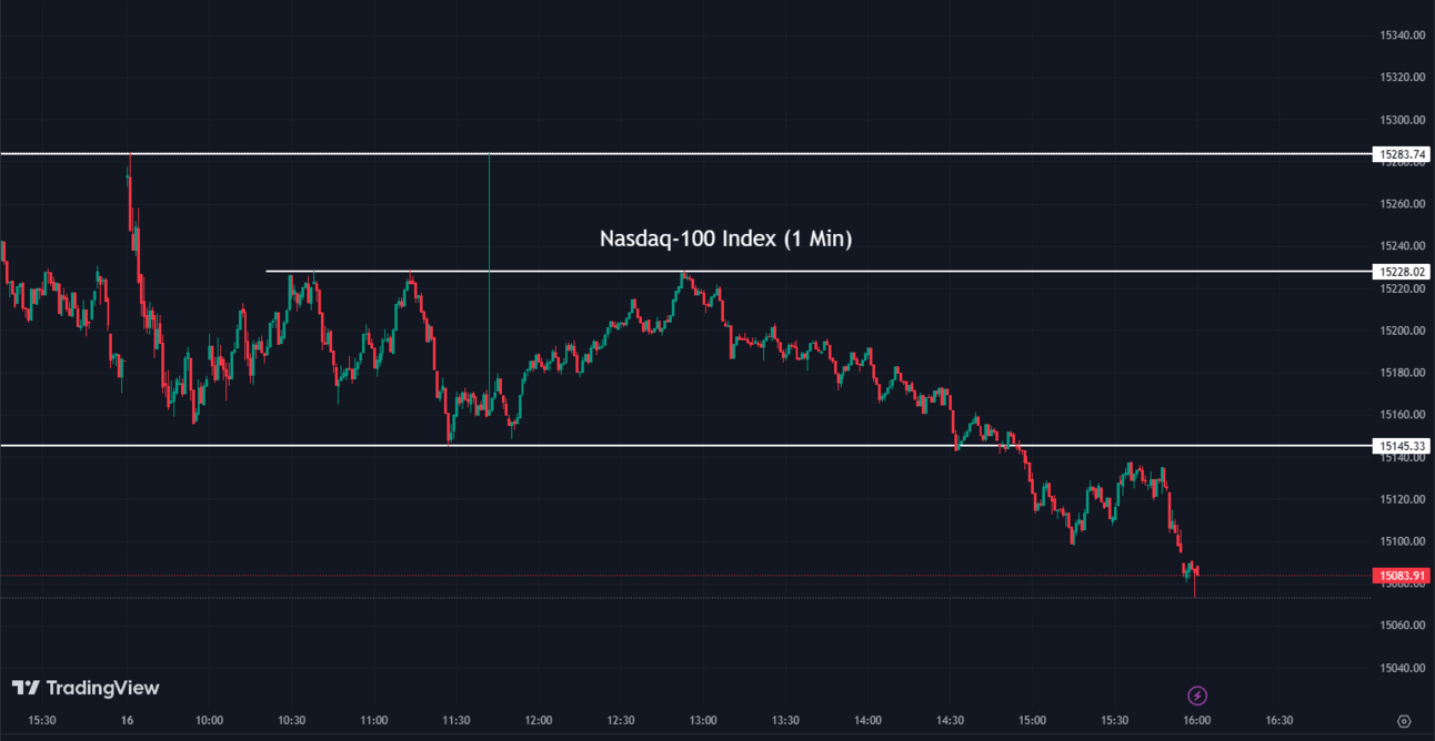 The Nasdaq-100 (NDX) declined by -0.67% to conclude at 15,083