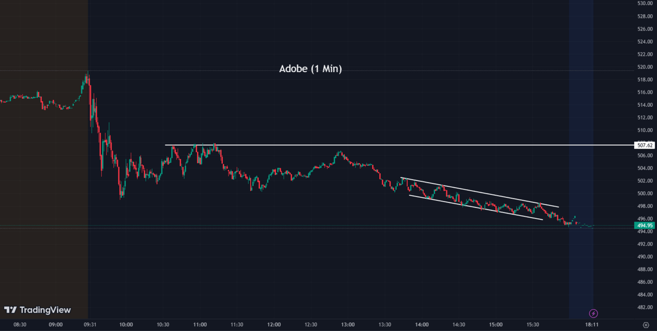 Adobe (ADBE) shares closed up by 0.87% after the company reported better-than-expected results in its fiscal second-quarter report. The company posted adjusted earnings per share of $3.91 on $4.82 billion in revenue, surpassing analysts' estimates. Adobe also provided positive guidance, stating that its current-quarter and full-year revenue are expected to align with market expectations, with higher adjusted earnings per share.
