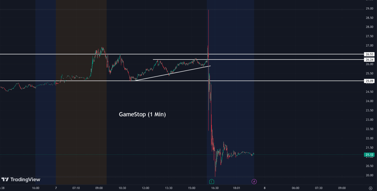GameStop Corp. (GME) has fired CEO Matt Furlong and seen its shares plunge over 20%. Chairman Ryan Cohen will take on a new executive role, focusing on management oversight and capital allocation. The company reported lower-than-expected sales for the first quarter and has struggled to adapt to the shift toward online game sales. GameStop's shares fell to 19.19% in extended trading after the announcements.