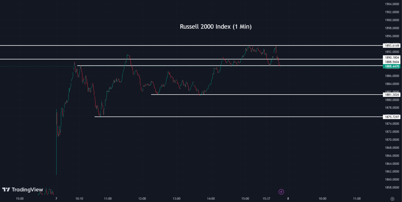The Russell 2000 (RUT) gained +1.78% ending at 1,888