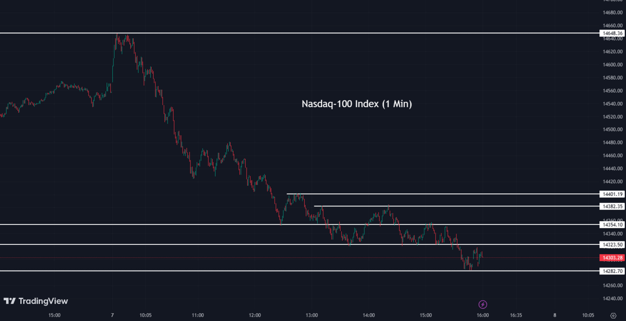 The Nasdaq-100 (NDX) dropped by -1.75% to conclude at 14,303