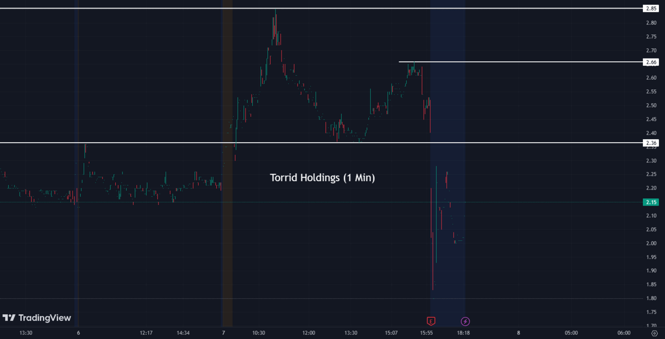 Torrid Holdings (CURV) reported a decline in profit and revenues for the first quarter. The company's stock dropped 12% in after-hours trading. Net income was $11.8 million, or $0.11 per share, missing analysts estimates. Revenue decreased to $293.9 million, below the consensus estimate of $309 million. The company expects lower revenues for the second quarter and full-year revenue below market expectations.