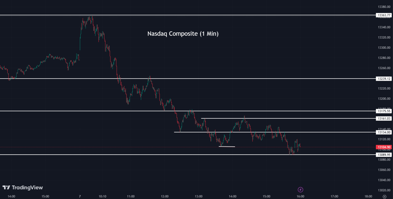 The Nasdaq Composite (IXIC) fell by -1.29% to end the day at 13,104