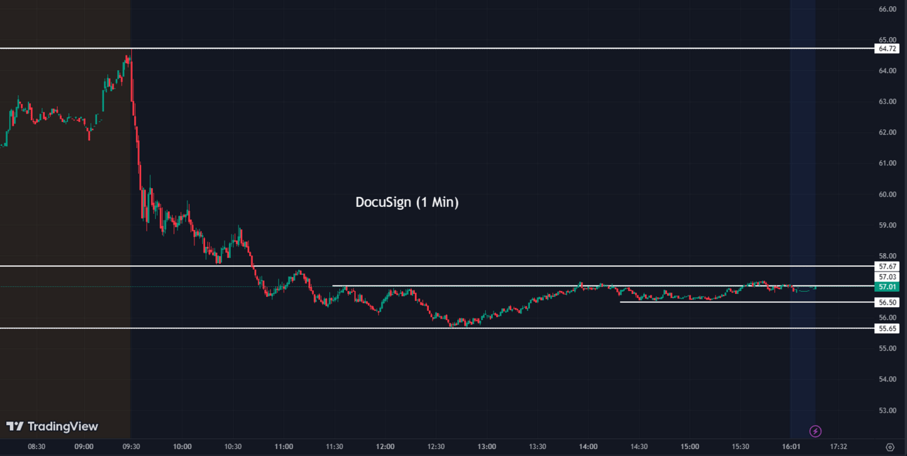 DocuSign (DOCU) shares declined by 2.50% after CEO Allan C. Thygesen expressed caution due to a more moderate pipeline, cautious customer behavior, smaller deal sizes, and lower volumes. Although DocuSign exceeded expectations in its fiscal first-quarter results, reporting adjusted earnings of 72 cents per share on $661 million in revenue compared to analysts' estimates of 56 cents per share and $642 million in revenue, the cautious outlook impacted investor sentiment.