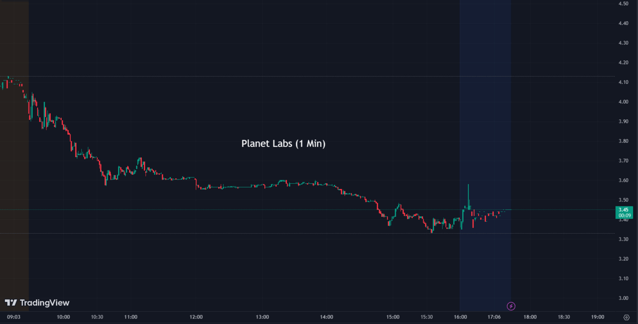Shares of Planet Labs dropped 30% after it lowered its annual revenue guidance. The company reduced its fiscal year 2024 revenue forecast from $225 million to $235 million, down from $248 million to $268 million. Planet also projected wider losses on an adjusted EBITDA basis. Despite this, the CEO mentioned strong demand for their data solutions driven by global events. The company reported revenue of $52.7 million for the first quarter, a 31% increase year-over-year. Planet's customer base grew to 903, with defense and intelligence accounting for 44% of revenue.