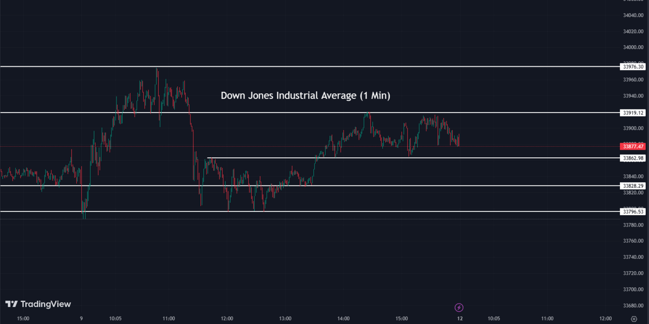 The Dow Jones Industrial Average (DJI) climbed up +0.13% to finish at 33,876