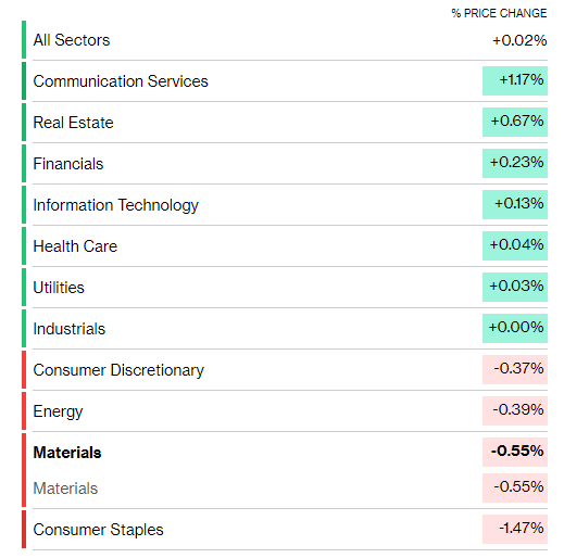 Performance across sectors was diverse, reflective of the market's multifaceted nature. Communication Services led the way with a 1.17% increase, followed by Real Estate, up 0.67%, and Financials up 0.23%. Conversely, Materials and Consumer Staples fell by 0.55% and 1.47% respectively.