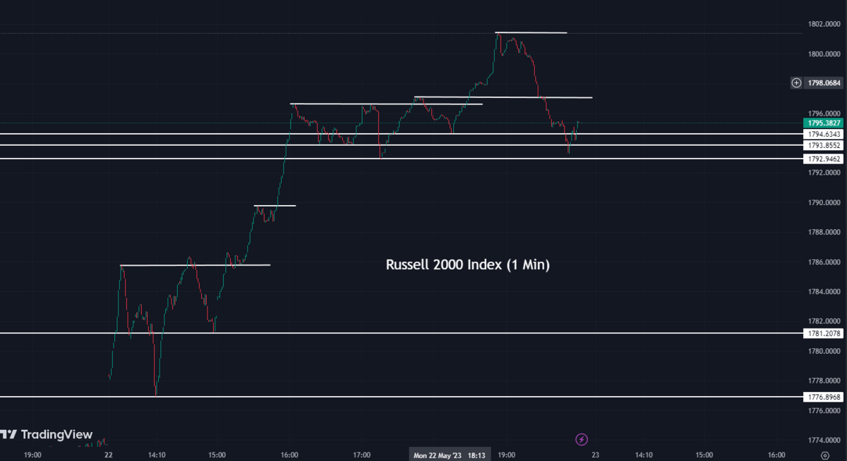 The Russell 2000 Index increased by 1.22% to conclude at 1,795 points.