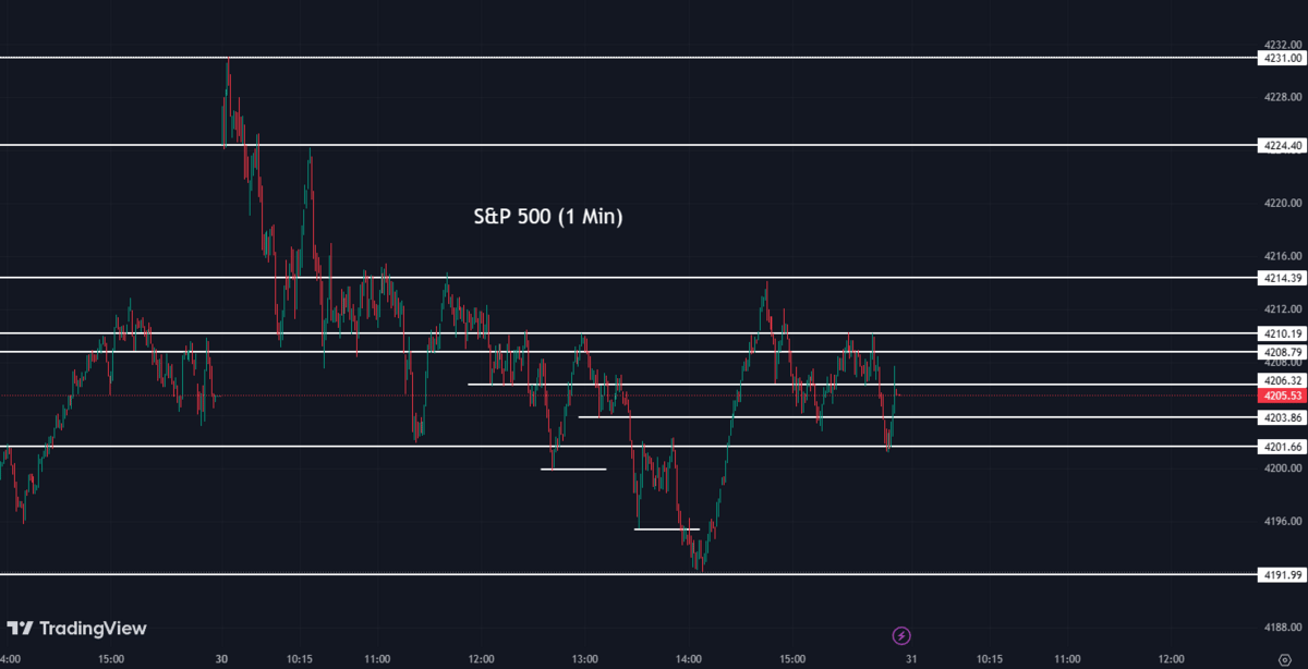 The S&P 500 (SPX) was up 0.002% coming to a conclusion at 4,205