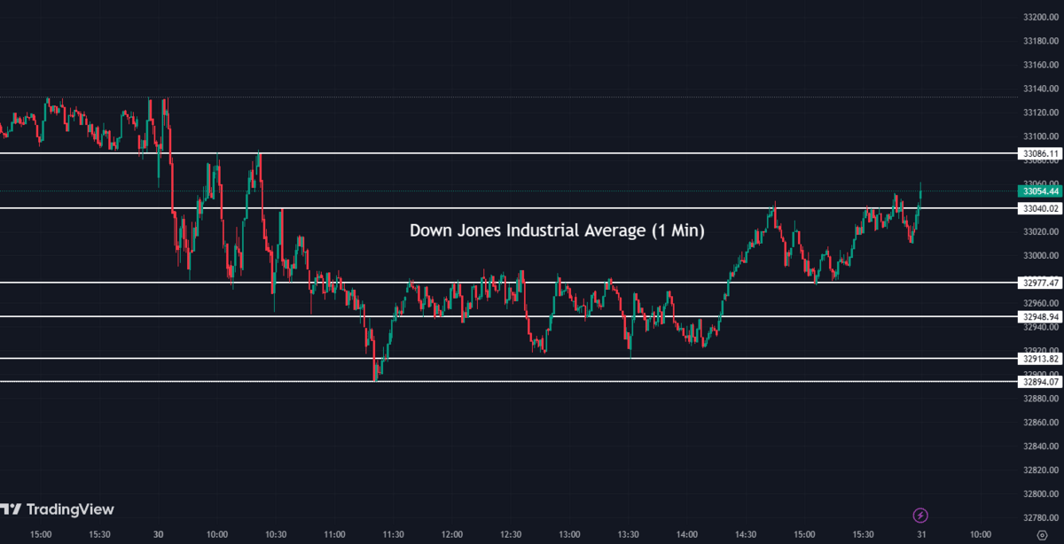 The Dow Jones Industrial Average (DJI) dropped 0.15% to finish at 33,042
