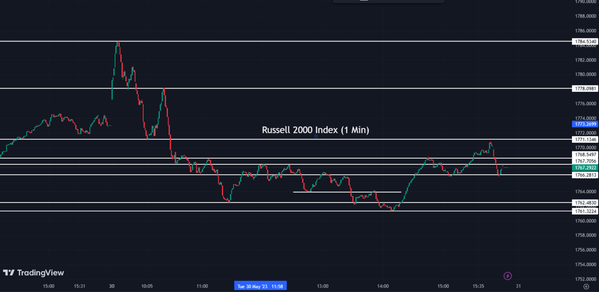 The Russell 2000 (RUT) fell by 0.32% to settle at 1,767