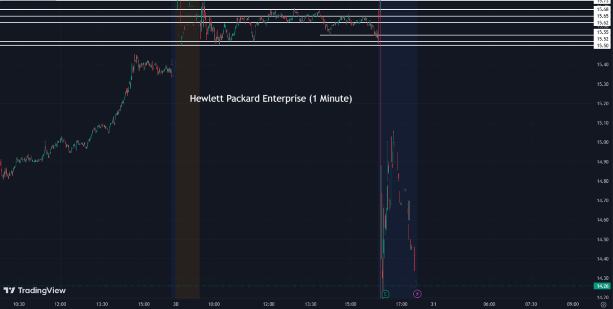 Hewlett Packard Enterprise (HPE), the technology services company, experienced a 7% decrease in its stock price after the market closed due to mixed results in its fiscal second quarter. HP Enterprise reported $6.97 billion in revenue and 52 cents in adjusted earnings per share, surpassing expectations of 48 cents per share but falling short of the expected $7.31 billion in revenue.