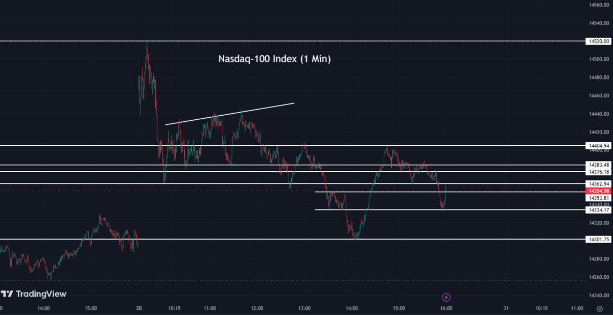 The Nasdaq-100 (NDX) increased by 0.40% to conclude at 14,354