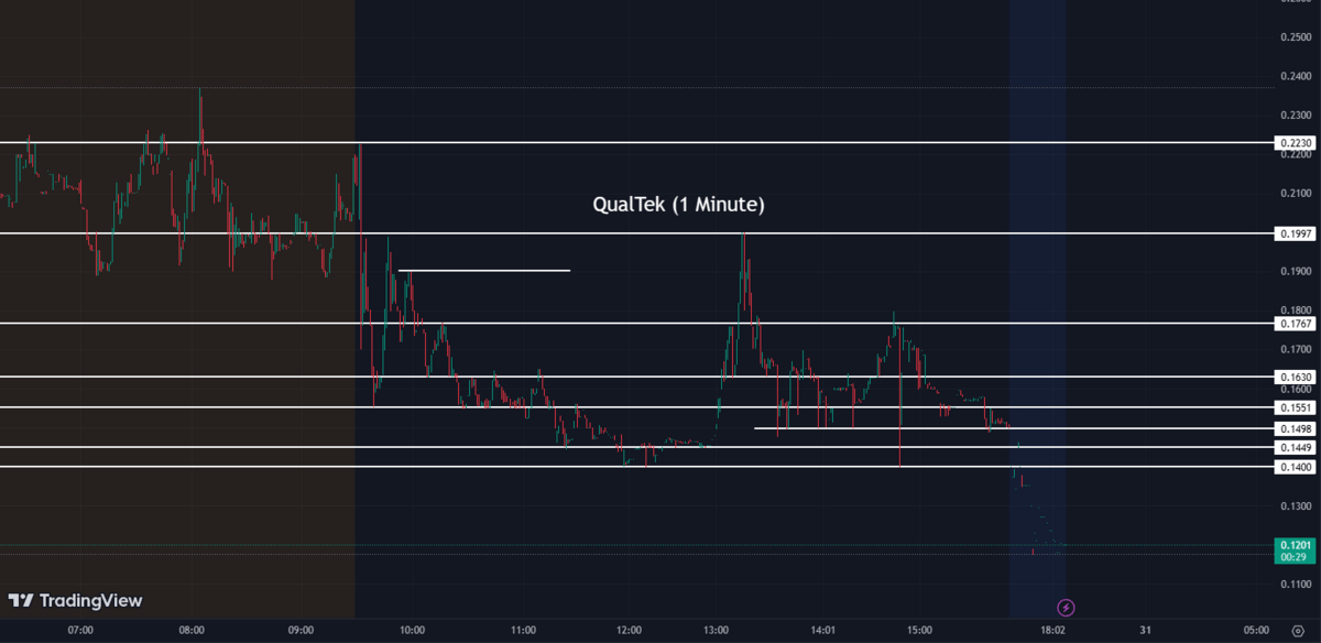 QualTek Services (QTEK) experienced a significant surge today ending up 95.82% to finish at 0.15. The surge is likely driven by the substantial increase in trading volume, with more than 5.4 million shares traded compared to the average daily volume of approximately 653,000 shares.